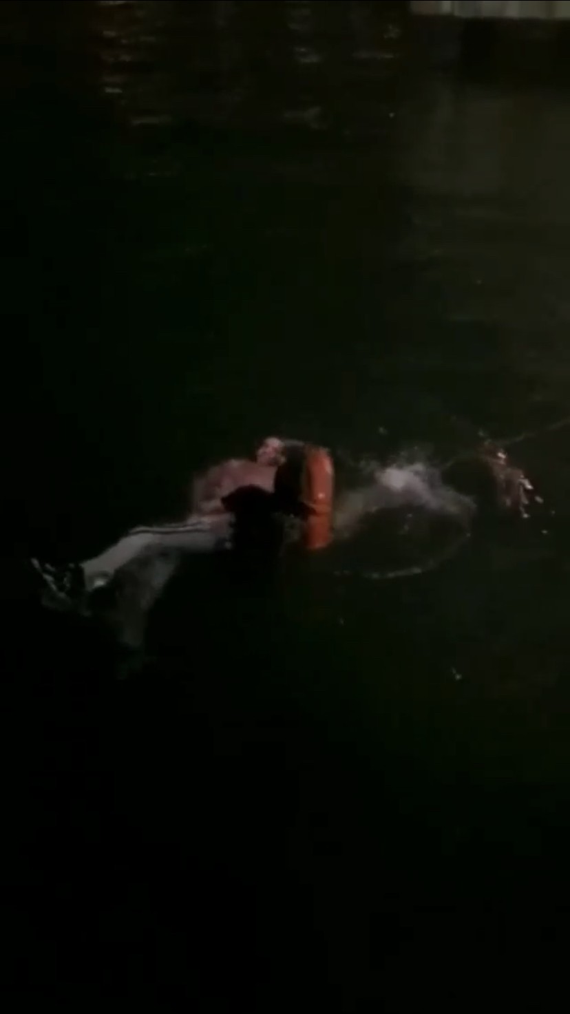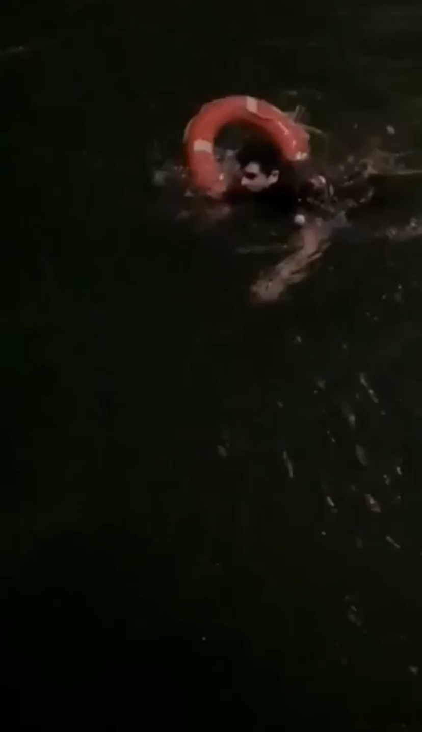 Ekipler çevrede güvenlik önlemi alırken bir bekçi, denizde çırpınan genci kurtarmak için soğuk havada denize girdi. Yüzme bilmeyen gencin yanına can simidiyle yaklaşan bekçi, onu kurtardı.
