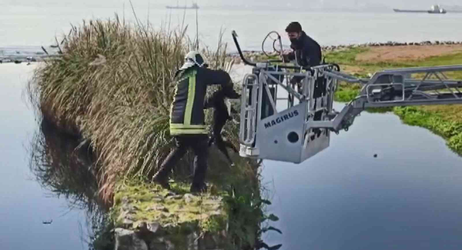Olay, sabah saatlerinde İzmit Salim Dervişoğlu Caddesi üzerindeki derede meydana geldi. Edinilen bilgiye göre, derenin ortasında bulunan alanda köpeğin mahsur kaldığını gören vatandaşlar Kocaeli Büyükşehir Belediyesi itfaiye ekiplerine ihbarda bulundu.