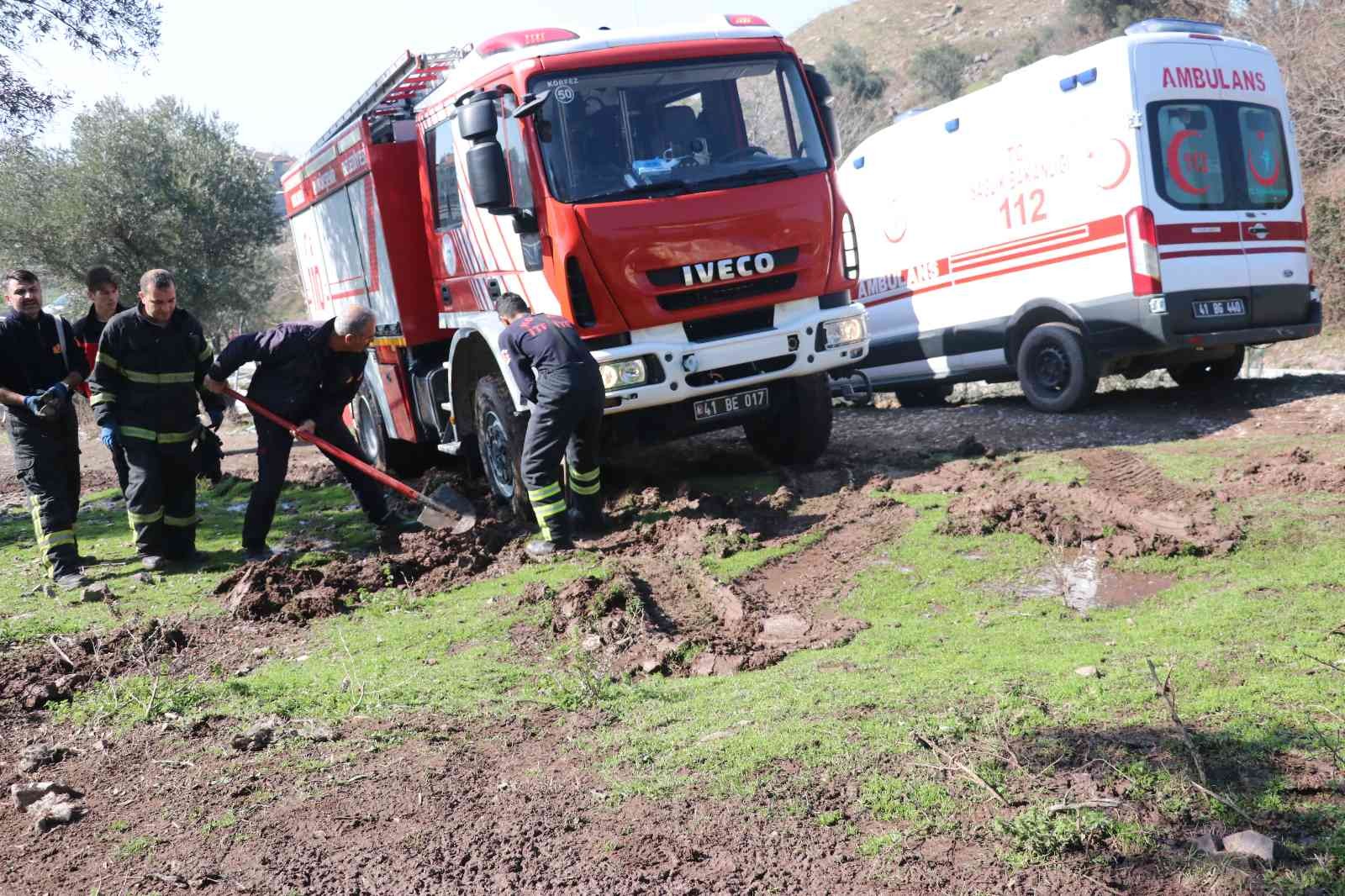 Kocaeli’nin Körfez ilçesinde hasta taşıyan ambulans çamura saplandı. Hasta, bölgeye sevk edilen bir diğer ambulans ile hastaneye ulaştırılırken, kurtarmak için gelen itfaiye aracı da çamura battı.