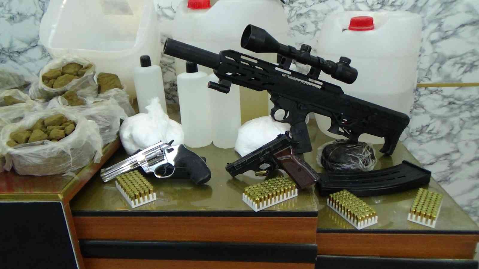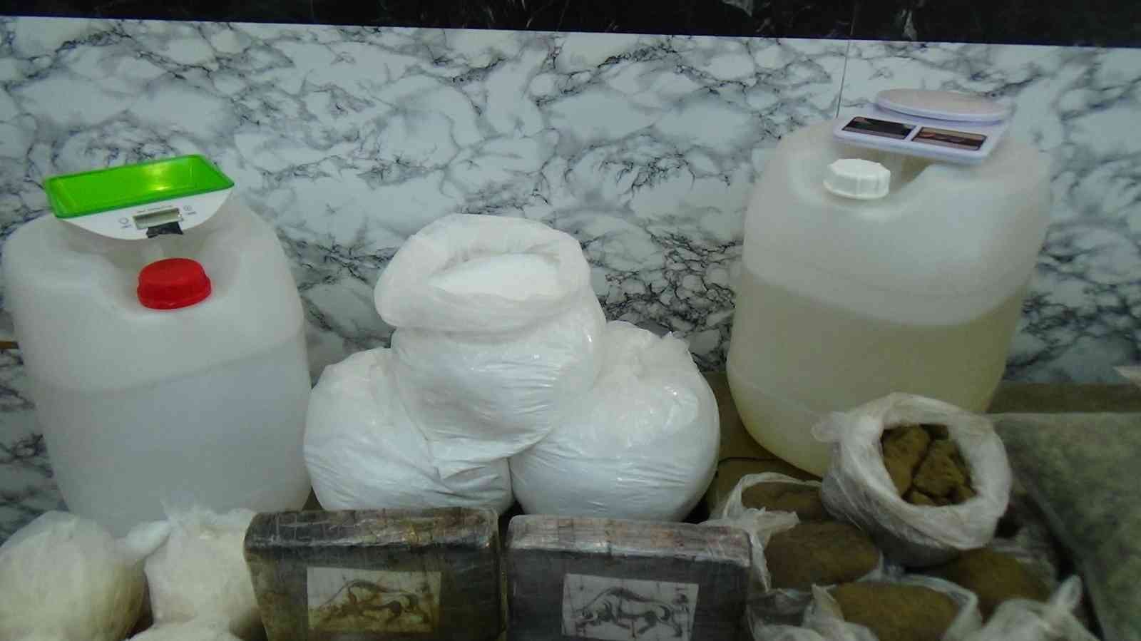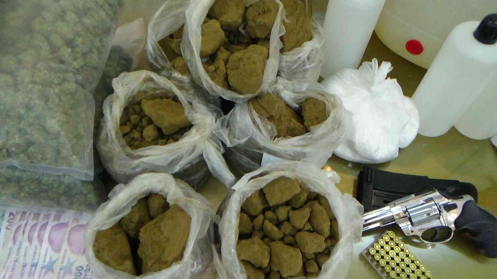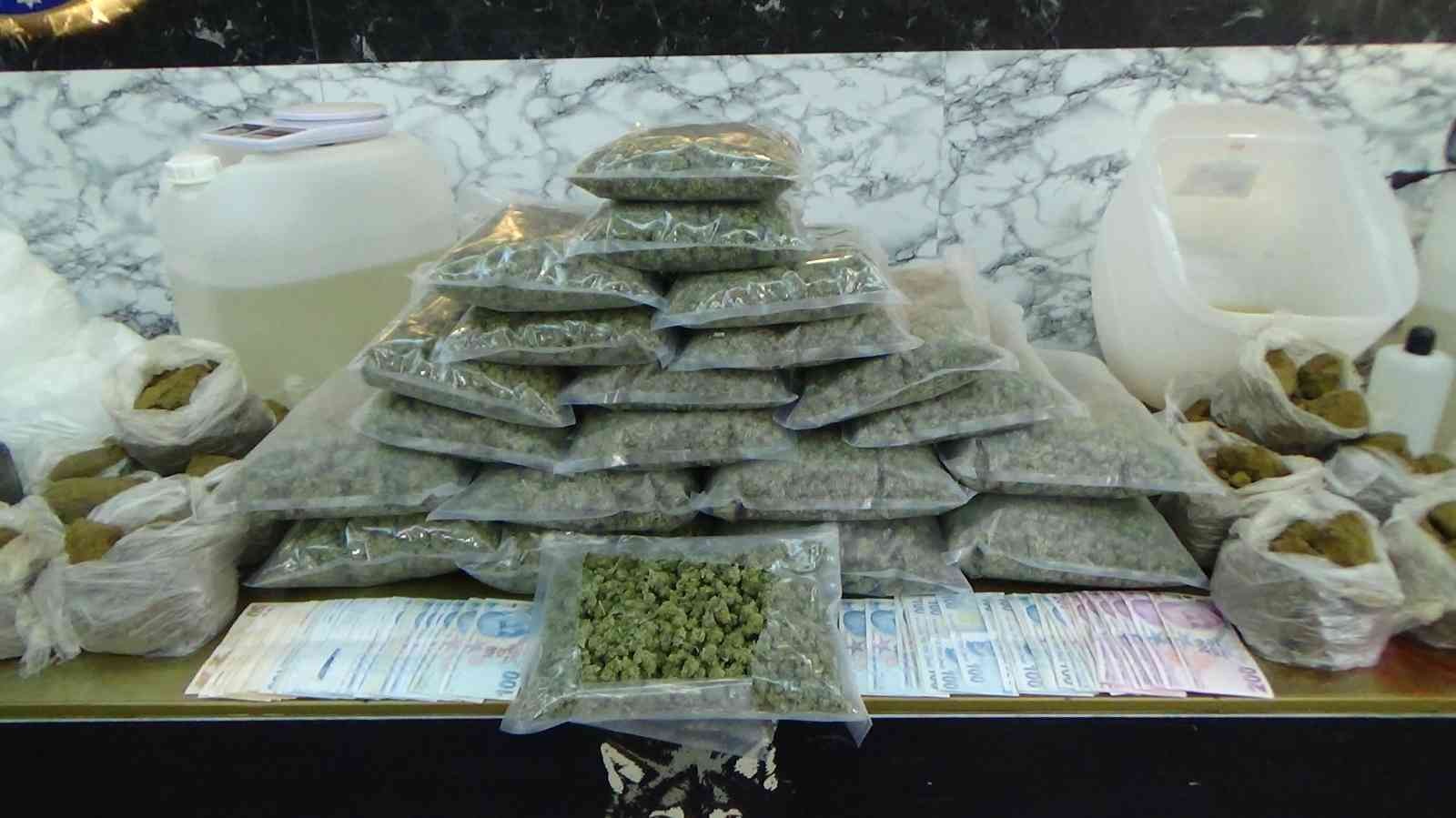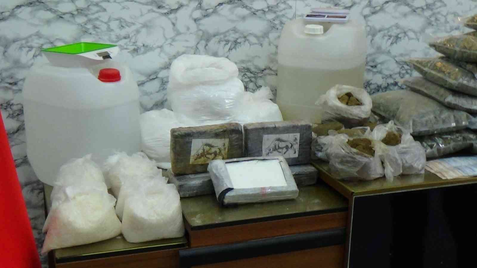 Emniyet ekiplerince operasyon düzenlenen ev ve depolarda gerçekleştirilen aramalarda 42 kilo 600 gram sıvı halde metamfetamin maddesi, 17 kilo 850 gram toz esrar, 11 kilo 750 gram skunk, 9 kilo 590 gram kokain, 8 kilo 450 gram kristal halde metamfetamin, kokainin çoğaltımında kullanılan 13 kilo katkı maddesi, 43 kilo 200 gram sıvı halde kimyasal madde, 1 kilo 300 gram afyon sakızı, bu maddelerin ticaretinde kullanılan hassas teraziler, sıvı vakumlama cihazı, 2 ruhsatsız tabanca, 1 av tüfeği, 250 mermi ve uyuşturucu ticaretinden elde edildiği tahmin edilen 13 bin 500 lira para ele geçirildi.