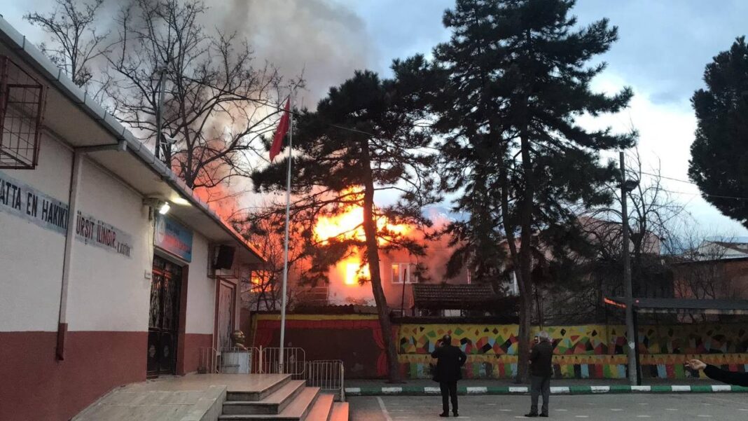 Bursa’da bir ilköğretim okulunun etrafındaki 3 ahşap ev alev alev yanınca okulun bir bloğu tahliye edildi. Yangına müdahale eden itfaiye ekipleri, çöken çatının altında kalmaktan son anda kurtuldu. Okul bahçesine çıkarılan çocuklar yangını korku dolu gözlerle izledi.