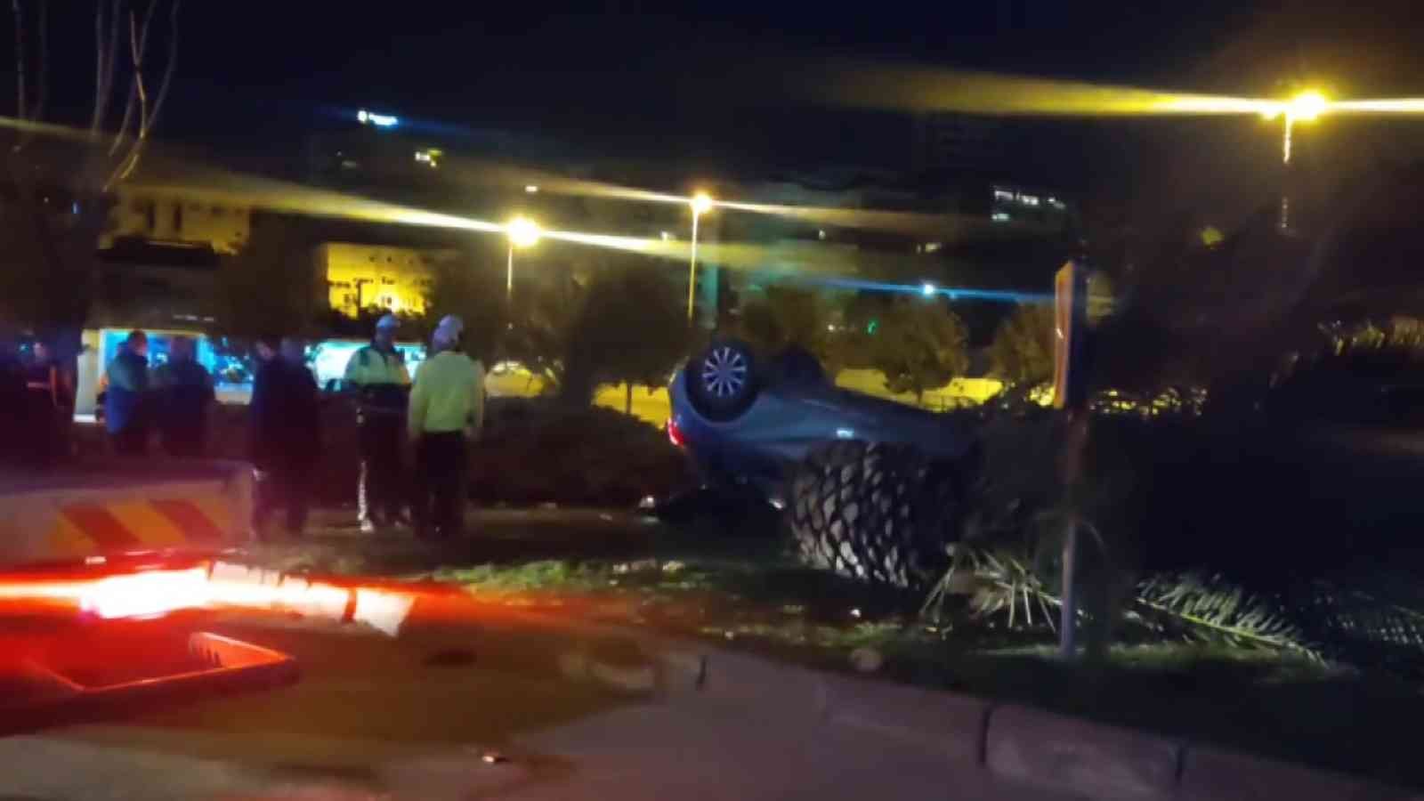 Otomobilin çarptığı bir palmiye ağacı da çarpmanın etkisi ile kökünden sökülerek devrildi.
