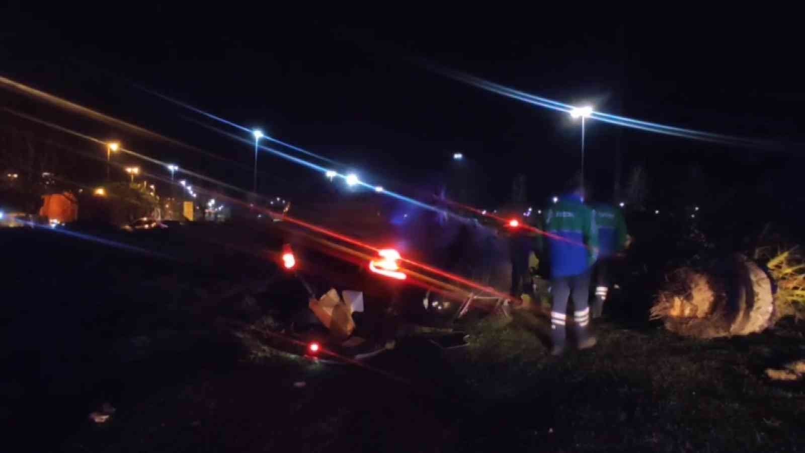 Kaldırıma çarpan otomobil yol kenarındaki otluk alana fırladı. Savrulan otomobilin takla atmasıyla otomobilde bulunan 6 kişiden 4’ü yaralandı.