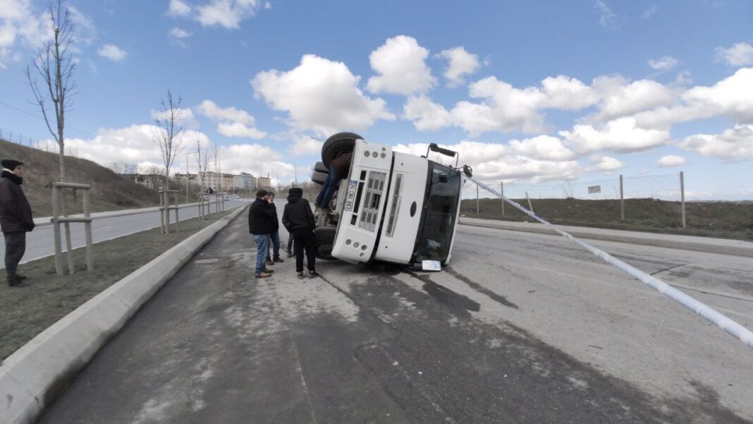 Kontrolden çıkan vidanjör devrilerek yan yattı. Kazayı yara almadan atlatan sürücü Murat E., araçtan kendi imkanlarıyla çıktı.