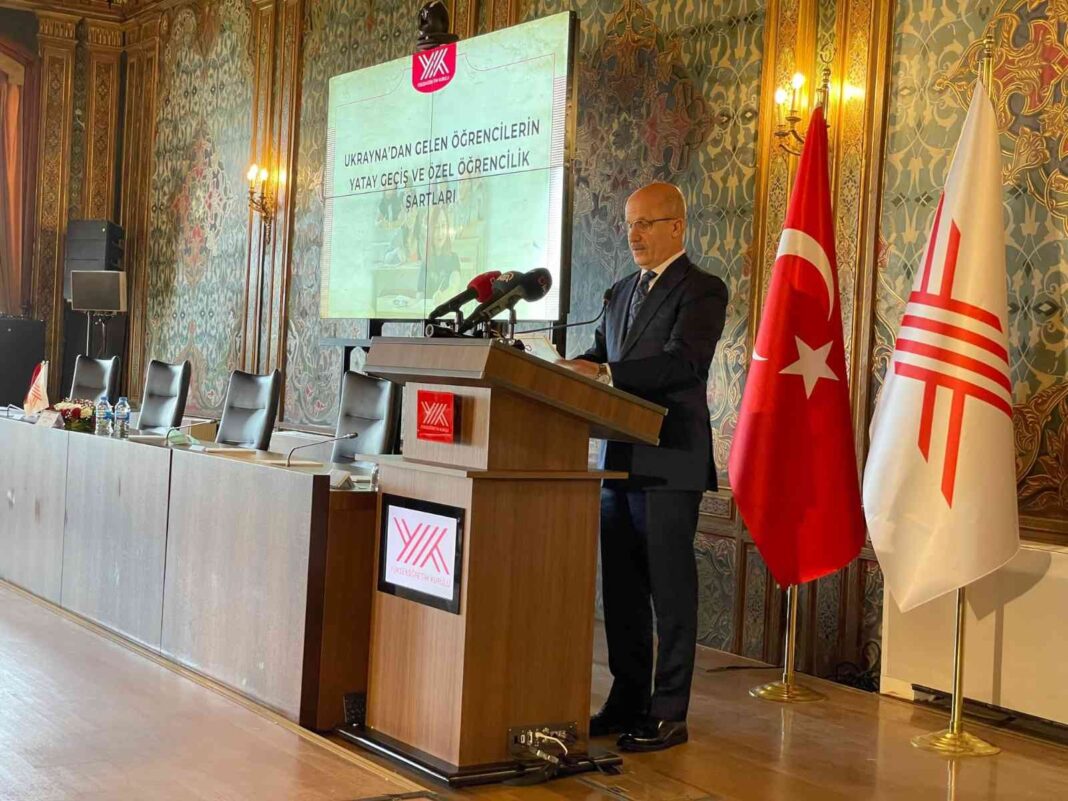 Yükseköğretim Kurulu (YÖK) İstanbul Üniversitesi Rektörlük binasında Ukrayna’dan gelen öğrencilerin yatay geçiş ve özel öğrencilik şartlarının açıklandığı bir basın toplantısı düzenledi. Düzenlenen basın toplantısına YÖK Başkanı Prof. Dr. Erol Özvar, İstanbul Üniversitesi Rektörü Mahmut Ak, YÖK Başkanvekili Prof. DR. M.İ. Safa Kapıcıoğlu, YÖK Başkanvekili Prof. Dr. Rahmi Er, YÖK Genel Sekreteri Süleyman Necati Akçeşme, YÖK Yürütme Kurulu Üyesi Prof. Dr. Naci Gündoğan, YÖK Yürütme Kurulu Üyesi Prof. Dr. Ömer Açıkgöz, YÖK Yürütme Kurulu Üyesi Prof. Dr. Metin Topçuoğlu da katıldı.