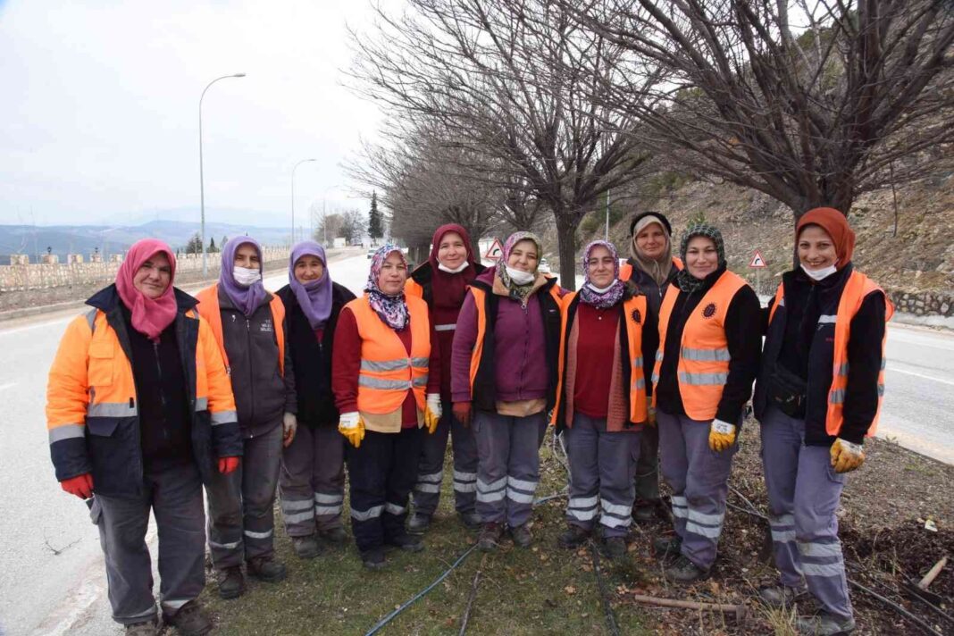 Bilecik Belediyesi Park ve Bahçeler Müdürlüğü çalışanı kadınlar 8 Mart Dünya Kadınlar Günü’ne Bilecik-Osmaneli karayolu üzerinde refüjde çalışarak girdi.