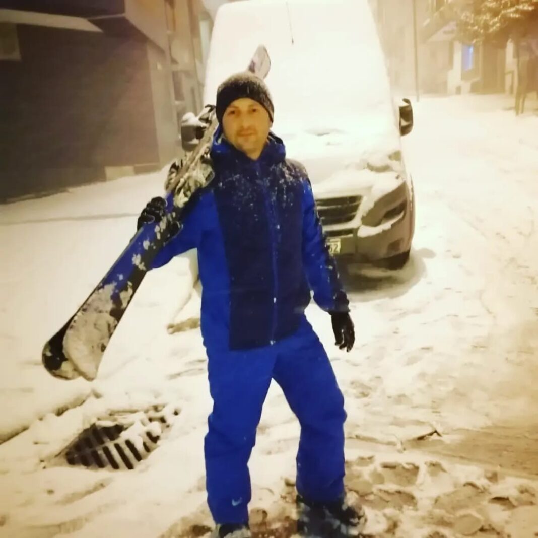 İstanbul’da karla örtülürken güvenlik amirliği yapan ve kayakla ilgilenen Nevruz Avcı da kayak takımları giydi, oğlunu sırtına alarak karla kaplı sokaklarda kayak yaparak karın tadını çıkardı.