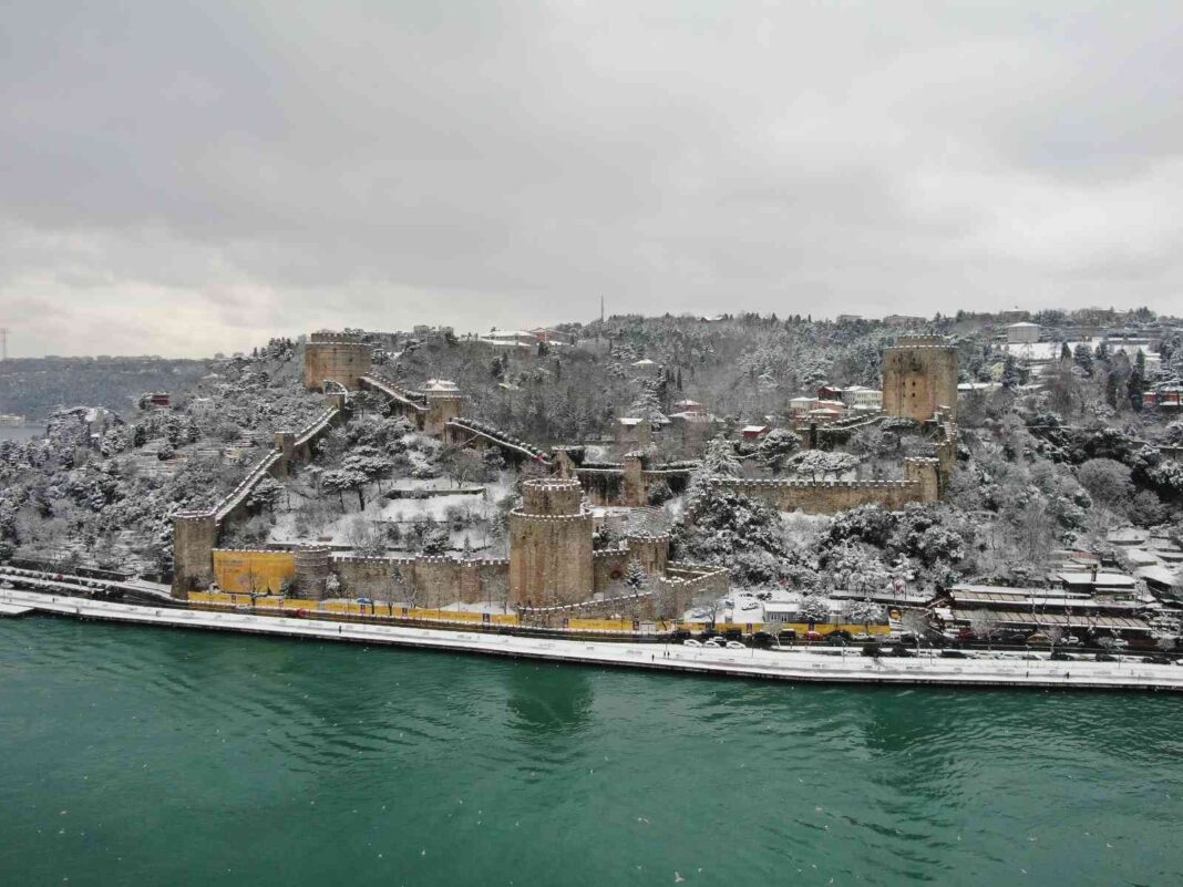 Rumeli Hisarı’nı kaplayan beyaz örtü de hayran bırakan manzaralar ortaya çıkardı.
