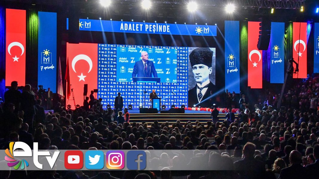 İYİ Parti, 7. kuruluş yıl dönümünü Ankara Atatürk Spor Salonu’nda, partililerin yoğun katılımıyla kutladı. Etkinlikte, partililerin taşıdığı “Adalet peşinde” ve “Anamızı da aldık geldik” yazılı pankartlar dikkat çekerken, “İktidara doğru Dervişoğlu” sloganları atıldı.