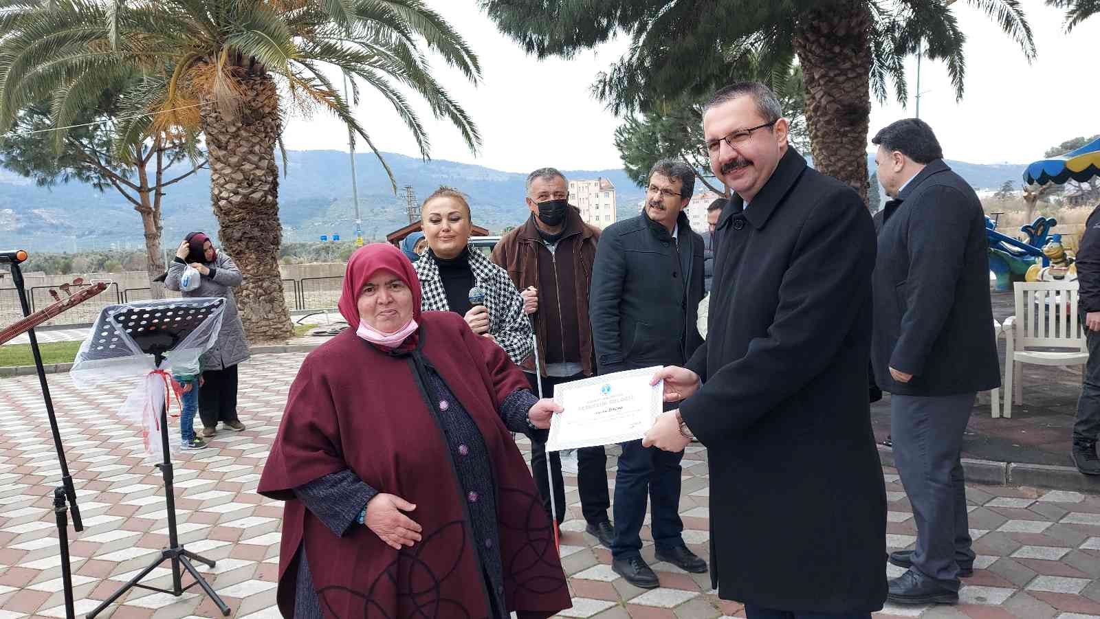 Konser sonunda Havran Kaymakamı Enver Özderin, Ayvalık-Küçükköy Türk Halk Müziği Derneği Başkanı Nezihe Baltacı’ya katkılarından dolayı teşekkür belgesi verdi.