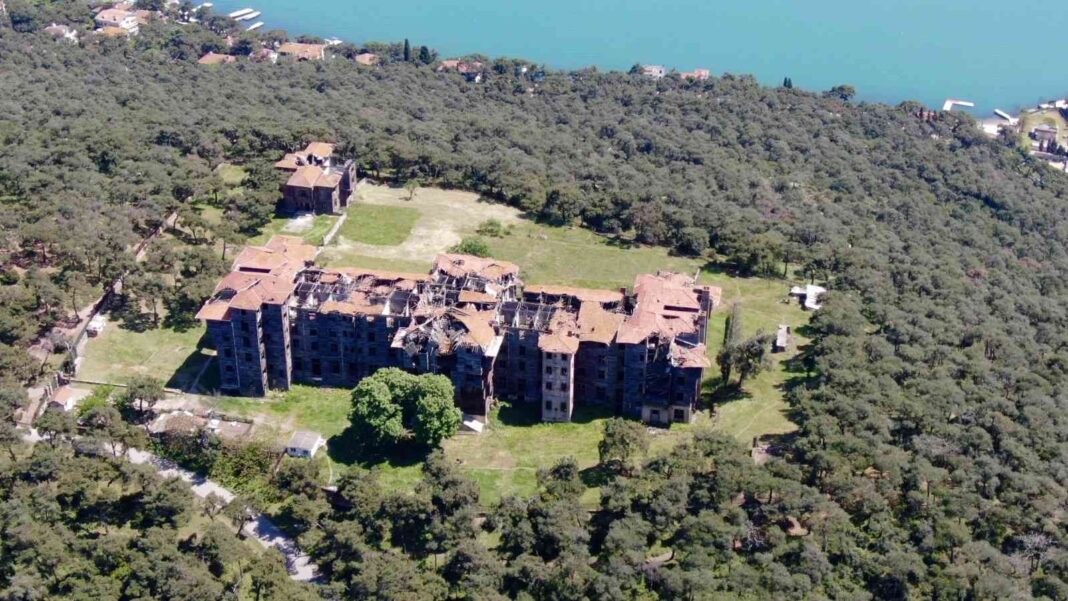 Büyükada’yı simgeleyen Büyükada Rum Yetimhanesi, yaklaşık 58 yıldır hizmet vermiyor. Yıllara meydan okuyarak ayakta kalan Büyükada Rum Yetimhanesi için restorasyon çalışmaları öncesi son hazırlıklar tamamlanırken, tarihi yapının son hali hali havadan görüntülendi.