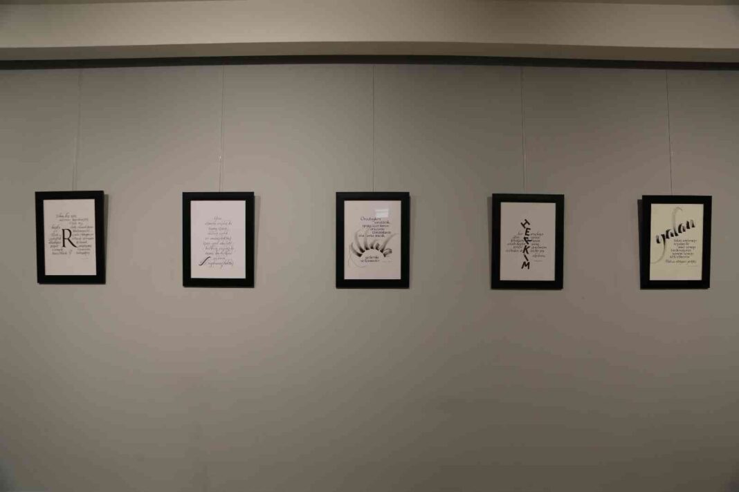 Canım elinde olan Allah’a yemin ederim ki oruçlunun ağız kokusu Allah indinde misk kokusundan daha güzeldir’ gibi. Bunları yazmak beni çok etkiledi. Eserlerde italik, brush, gotik, ruling gibi farklı yazı tekniklerini kullandım. Eserleri yaklaşık iki hafta gibi kısa bir sürede tamamladım” ifadelerini kullanarak sözlerini şöyle sürdürdü: “Kaligrafi sanatı cismani aletler ile ruhumuzun, yansımasıdır. Yani ruhu dışa yansıtmaktır. Merkezinde hakkı aramak olmalıdır.