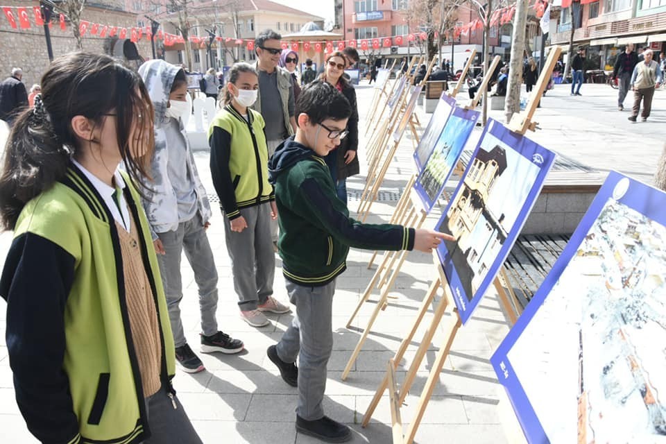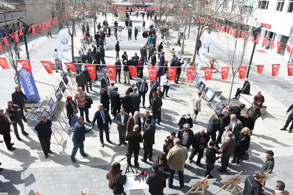 Yenişehir tarihi bina önünde düzenlenen Dört Mevsim Yenişehir Fotoğraf sergisinin açılışına vatandaşlar yoğun ilgi gösterdi.