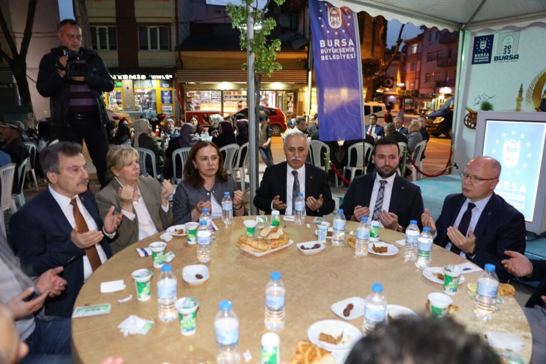 Ramazan ayının manevi iklimini düzenlediği programlarla tüm şehirde yaşatan Bursa Büyükşehir Belediyesi, geleneksel iftar programını bu kez Yenişehir İlçesi Çınarlı Camii önünde düzenledi. İlçe halkının yoğun ilgi gösterdiği programa Bursa Büyükşehir Belediyesi Başkanvekilleri Süleyman Çelik ve Ahmet Yıldız, Yenişehir Belediye Başkanı Davut Aydın ve AK Parti İl Başkanı Davut Gürkan da katıldı. İftar öncesi Meddah ve Karagöz gölge oyunu gösterisi, çocuklara keyifli anlar yaşattı. Kur’an-ı Kerim tilavetinin okunduğu programda, akşam ezanıyla birlikte vatandaşlar hep birlikte oruçlarını açtı.