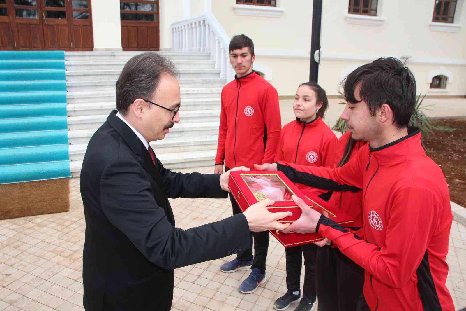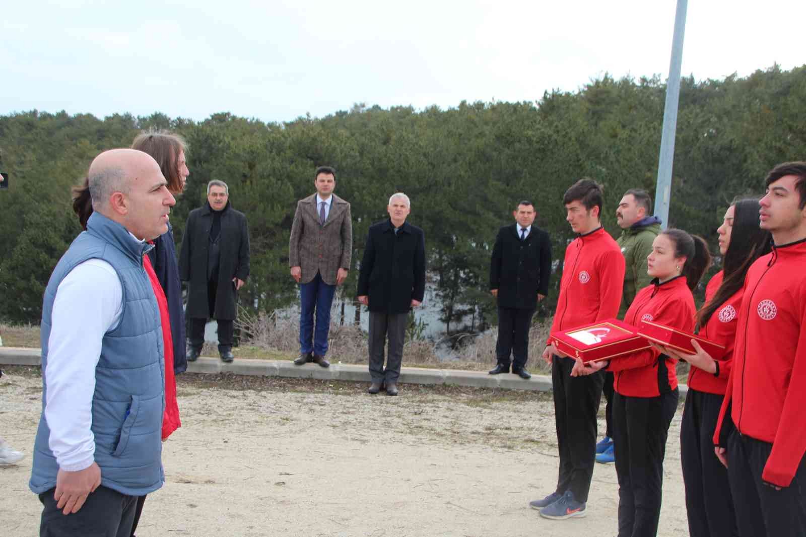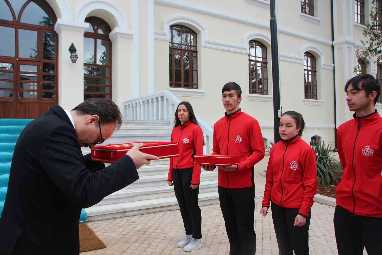 Burada bir konuşma yapan Vali Kızılkaya, “Çanakkale zaferi 107’inci yıl dönümü vesilesiyle Gelibolu Yarımadası’ndan alınan bu kutsal toprağı, seniz suyu ve şanlı bayrağımızı Cumhurbaşkanımız Recep Tayyip Erdoğan’a arz edilmek üzere teslim alıyor ve Eskişehirli sporcularımıza teslim ediyorum” dedi.