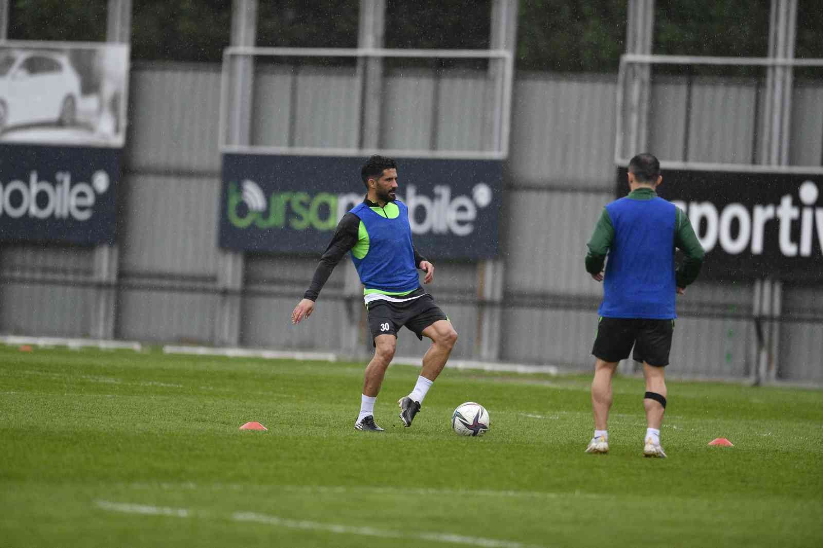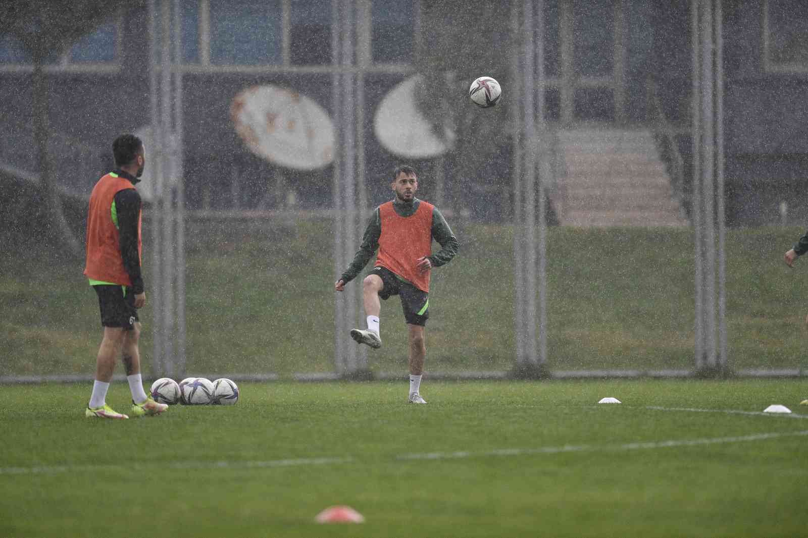 Bursaspor yağmur altında taktik çalışma gerçekleştirdi. Kocaelispor maçı hazırlıklarını sürdüren yeşil-beyazlı takımın antrenmanı 1 saat 20 dakika sürdü.