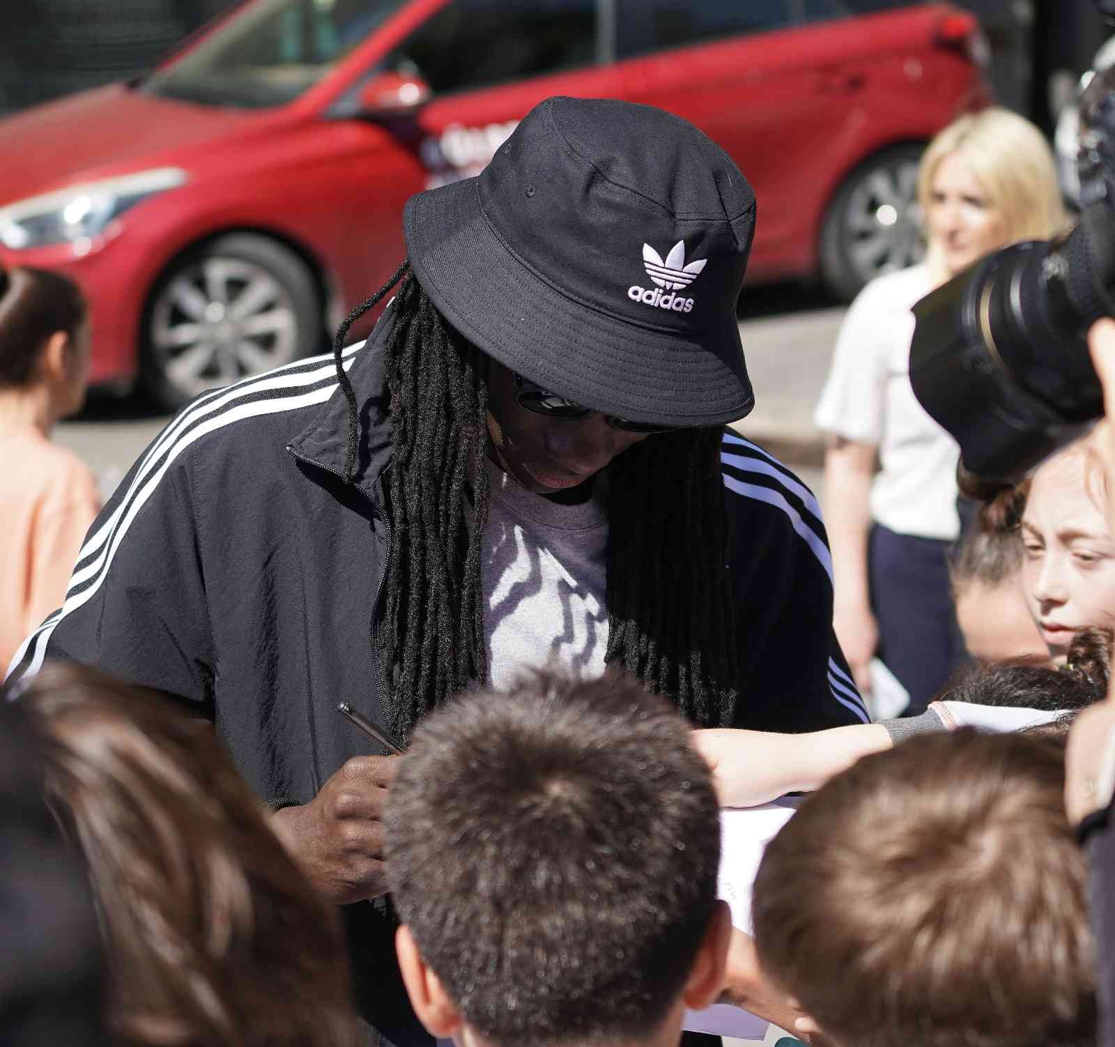 Her iki oyuncuya plaket ve çiçek verilirken, daha sonra çocuklar, Gomis ve Berkan’a şut çekerek ’Obeziteye Gol Atıyoruz’ etkinliğinde doyasıya eğlendi. Berkan ve Gomis de çocuklara bol bol imza dağıtıp fotoğraf çektirdi.
