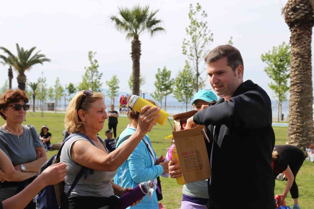 Edremit Belediyesi Spor İşleri Birimi bünyesinde görevli spor antrenörleri tarafından verilen spor eğitimlerinde her gün yüzlerce kişi hep birlikte spor yapıyor. Edremit Belediyesi Özel Kalem Müdürü ve Belediye Sözcüsü Tayfun Canlı da Altınkum Mahallesi sahilinde spor yapan ekibi ziyaret etti. Sağlıklı yaşam için suyun önemine dikkat çekmek için cam sulukların dağıtımını gerçekleştirdi.
