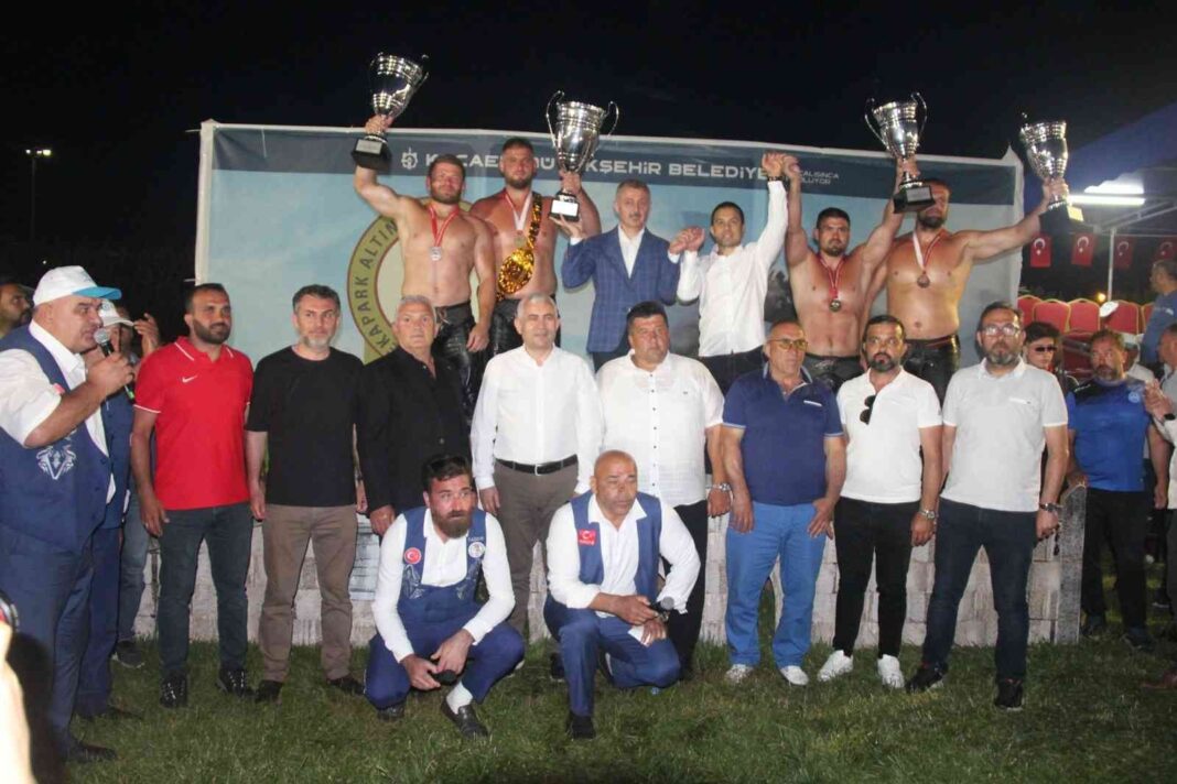 Tarihi Kırkpınar yağlı güreşleri öncesinde Kocaeli’de düzenlenen güreş organizasyonda altın kemer Nedim Gürel’in oldu.