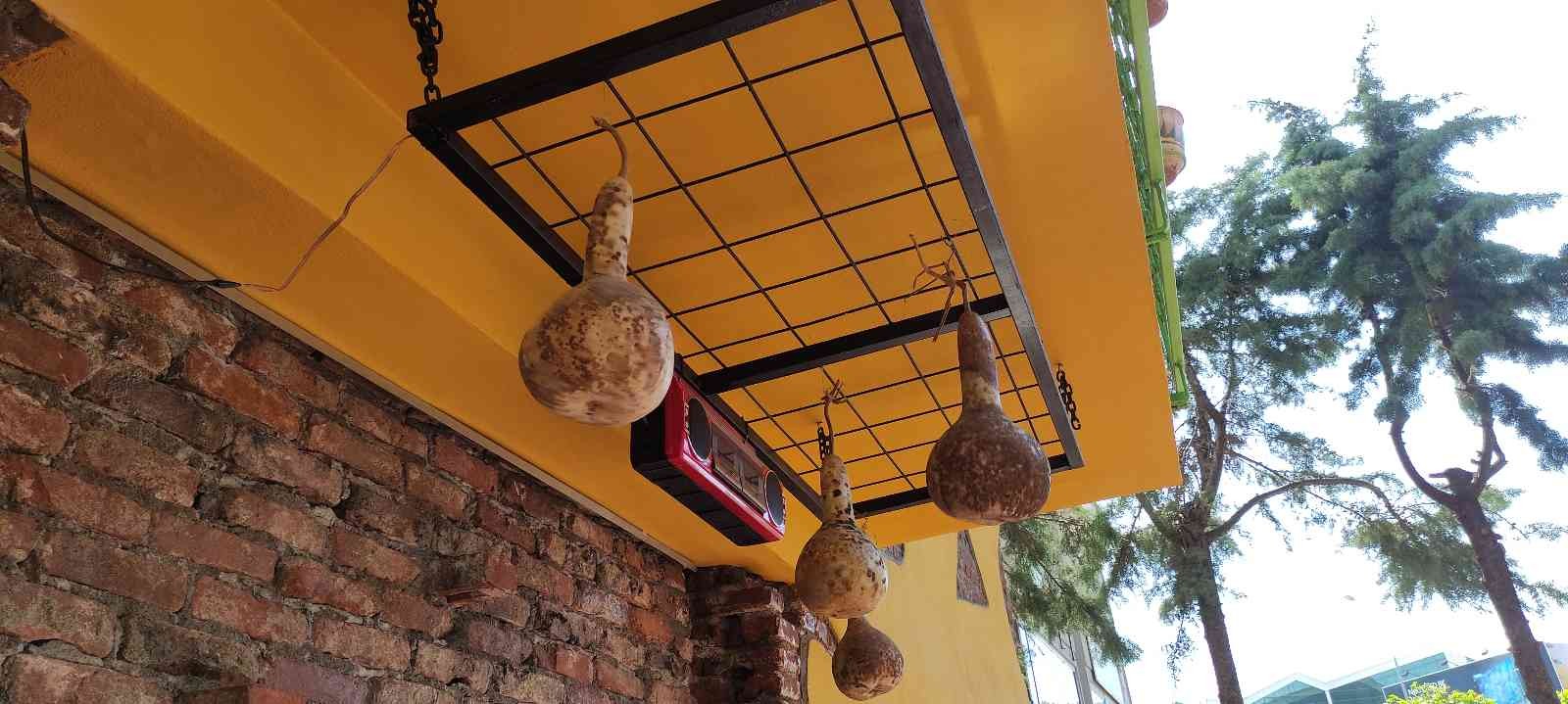 İki kafadar topladıkları hurda kapılarla bahçe duvarlarını yaptıkları kafenin masa ve sandalyelerini ise kablo makaralarından yaptı.