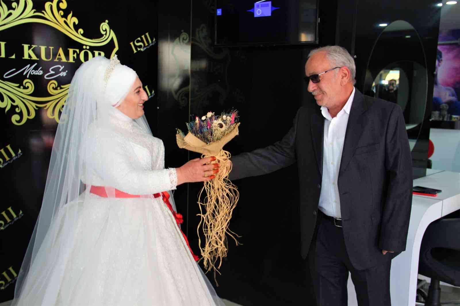 Sürpriz karşısında duygu dolu anlar yaşayan Ayşe Doğan, “Çok güzel bir duygu, çok mutluyum. İstiyordum zaten, sağ olsunlar onlar da bundan etkilenerek böyle güzel bir sürpriz yapmışlar. Evlenirken gelinlik giymiştim ama yine de istediğim bir gelinlik giymek içimde kalan ukdeydi. Çocuklarımı evlendirdim, 3 tane gelin aldım. İsteğim vardı, hep çocuklarıma söylüyordum. Onlar da sağ olsun, Allah razı olsun bu isteğimi beyinlerine kazımışlar. 38. yıldönümümüz oluyor, böyle güzel bir sürpriz yaptılar. İlk kez gelinlik giyiyormuşum gibi hissettim kendimi. Herkes mutlu olsun, evlilikler yıkılmasın. Güzel devam ettirsinler, güzel geçinsinler, güzel anlaşsınlar. Birbirlerini anlamaya çalışsınlar. Olmazına değil, oluruna gitsinler isterim. Bu şekilde her şey yoluna girecektir” dedi.