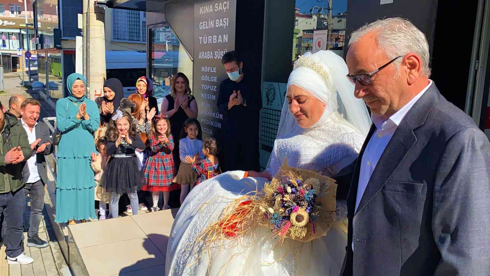 Gebze’de yaşayan 55 yaşındaki Ayşe Doğan ile 57 yaşındaki Bayram Doğan, birlikte 38 yılı devirdi. Geçen bu uzun yıllar sonrasında çift, 4 çocuk ve 8 torun sahibi oldu. Çocukları, Doğan çiftine 38. evlilik yıldönümünde unutamayacakları bir sürpriz yaptı. Evlendikleri zaman maddi imkanlar yüzünden istedikleri gelinlik ve damatlığı giyemeyen çift, çocukları sayesinde ilk günkü heyecanlarını yaşadı. Anne Ayşe Doğan yıllar sonra gelinlik giydi, gelin hazırlığı için kuaföre gitti. Baba Bayram Doğan ise damatlık giyerek, gelin arabası süsledi. Yıllar önce yapamadıkları bu anların heyecanını yaşayan çiftin mutluluğu gözlerinden okundu. Bayram Doğan, gelin arabasıyla gelip kuaförde hazırlanan gelini aldı. Torunları ve çocukları kuaförden el ele çıkan çifti dakikalarca alkışladı. Birbirlerinin ellerini hiç bırakmayan çift, evlerine düğün konvoyu yaparak gitti. Daha sonra ise çift bir fotoğraf stüdyosuna giderek bu anları ölümsüzleştirdi.