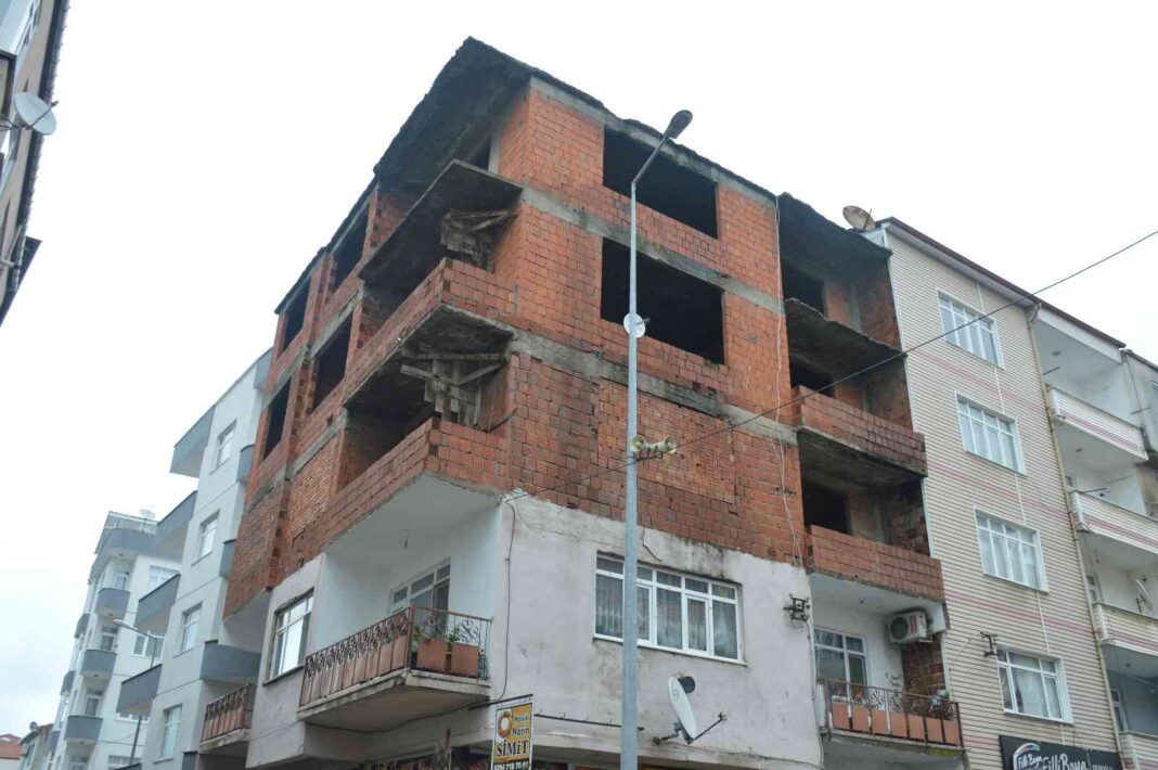 Sakarya’nın Karasu ilçesinde yapımı tamamlanmayan metruk binanın dairelerinden düşen parçalar, vatandaşları tedirgin ediyor.