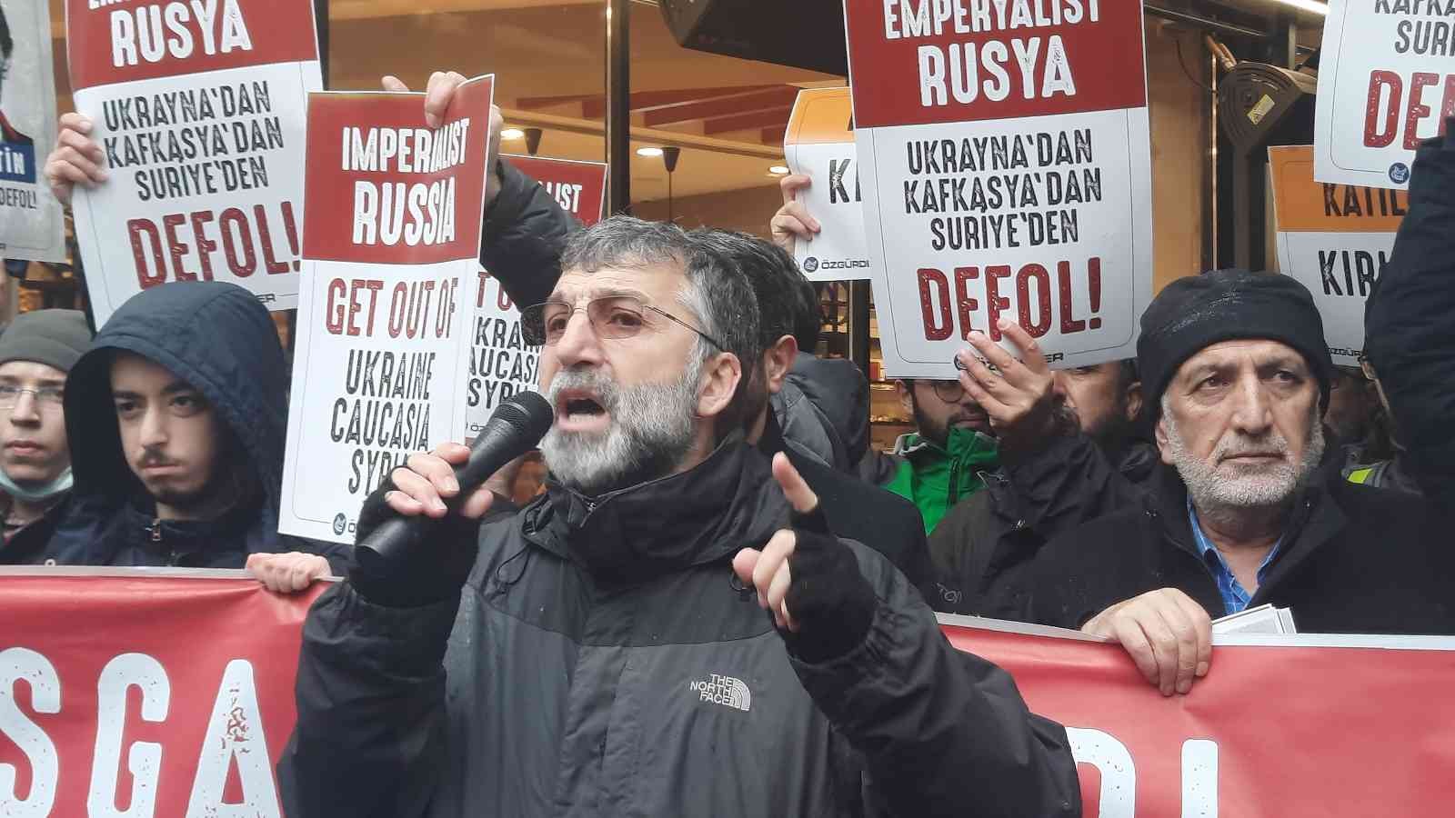 Rus ordusunun Ukrayna’ya düzenlediği saldırıları protesto etmek isteyen Özgür-Der (Özgür Düşünce ve Eğitim Hakları Derneği) tarafından Rusya Başkonsolosluğu önünde eylem düzenlendi. Başkonsolosluk binasının bulunduğu İstiklal Caddesinde bir araya gelen yaklaşık 100 kişilik grup, sloganlar atarak Rusya’nın Ukrayna’ya müdahalesine tepki gösterdi. Grup adına konuşan Özgür-Der Genel Başkan Yardımcısı Kenan Alpay, Rusya’nın insanlık tarihine yeni bir kara leke kazımış olduğunu ve insanlık suçu işlediğini söyledi. Eyleme katılan bir Rus kadın ise, Rus halkının savaş istemediğini, Ukraynalılarla dost olduklarını belirtti.