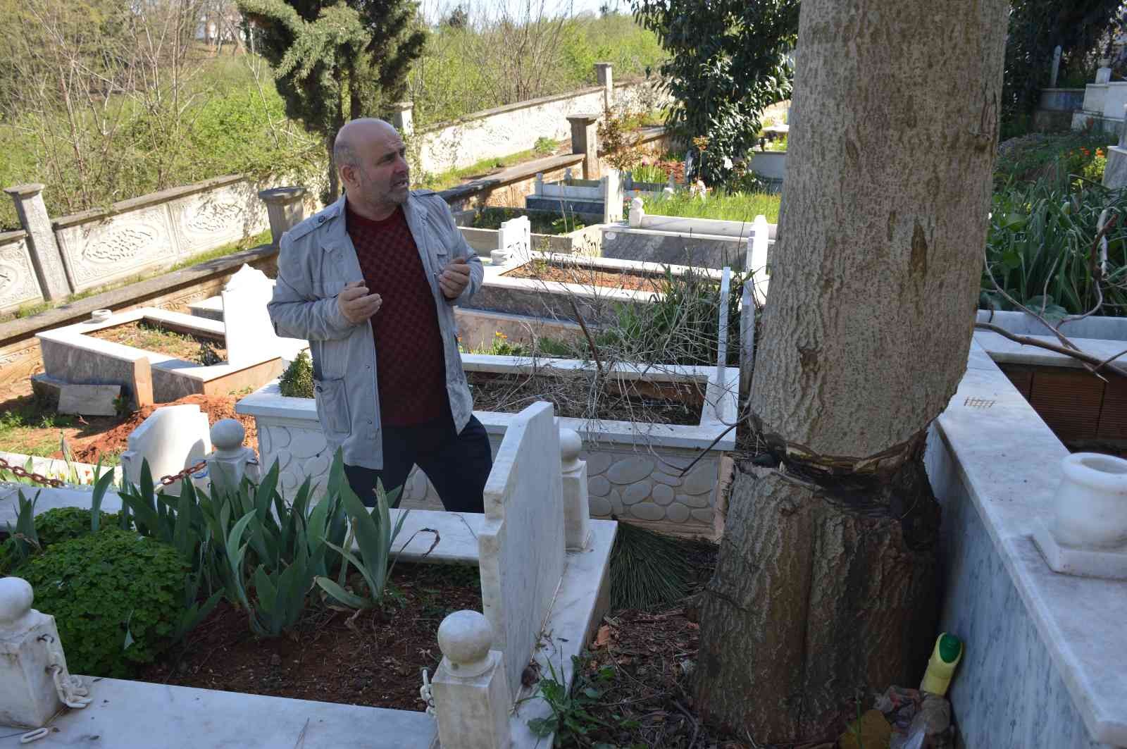 Durumu öğrenince yetkililere haber verdiğini belirten Temel Aslanbey, “Mezarlıkta kesilmiş bir ağacın olduğunu söylediler.