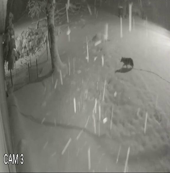 Sakarya’nın Akyazı ilçesinde yoğun kar sebebiyle yiyecek bulmakta zorlanan kurtlar, yerleşim yerlerine kadar geldi. Yemek arayışında olan hayvanlar güvenlik kamerasınca kaydedildi.