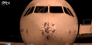 DOLU YAĞIŞI KOKPİT CAMINI ÇATLATTI